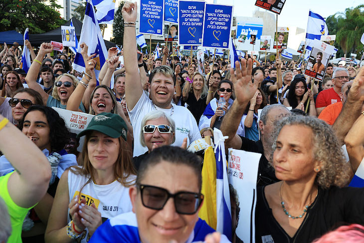 At the Re’im base, Idit Ohel sobbed as she waited to see her son. ‘We’re waiting to see Aloni – any minute now.’ On Tel Aviv’s Hostage Square, thousands gathered waving flags, watching the Red Cross convoys inch across the screen. ‘The excitement can’t be described,’ said the mother of Nimrod Cohen.