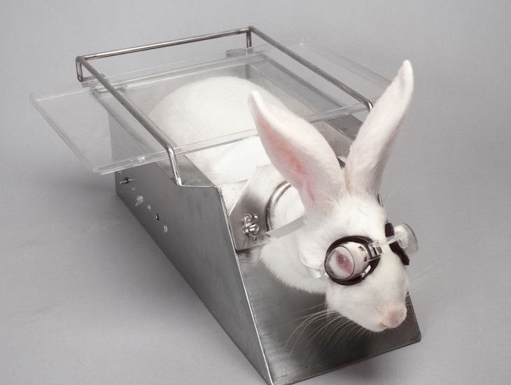 Consider: rabbits restrained while caustic agents are poured into their eyes; infant monkeys torn from their mothers and locked alone in cages to study the psychological effects of maternal deprivation. Pigs shot, set ablaze, and catalogued. Guinea pigs convulsing in the grip of nerve agents.