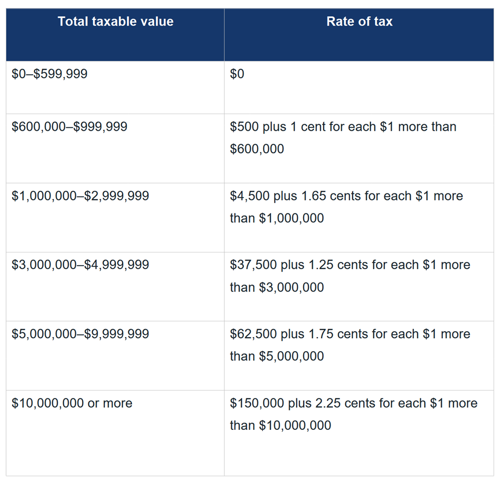 And what a money spinner it is proving to be in modern times with rapidly increasing land values and a scale of non-indexed tax rates that kick in at a relatively low level of $600,000 and rise rapidly after that. Judge for yourself from this table provided by the Queensland Revenue Office.