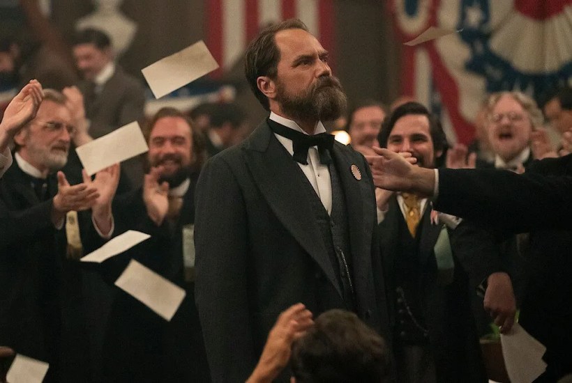 The narrative of Mike Makowsky’s show is divided into two interconnected but separate strands, each given roughly equal screen time over the four episodes. The first is relatively conventional politicking, exploring how Garfield is beset by power brokers and cynics including Shea Wigham’s Republican bigwig Roscoe Conkling and, uproariously, Nick Offernan’s Chester A. Arthur, a Falstaffian opportunist (catchphrase: “Music! Fighting! Sausages!”) who nonetheless is well-versed in the Machiavellian arts. All this is gripping enough, shot through with wry humor and some magnificent facial hair, but, in truth, it is unlikely to change anyone’s opinion about the interest levels of 19th-century political shenanigans.