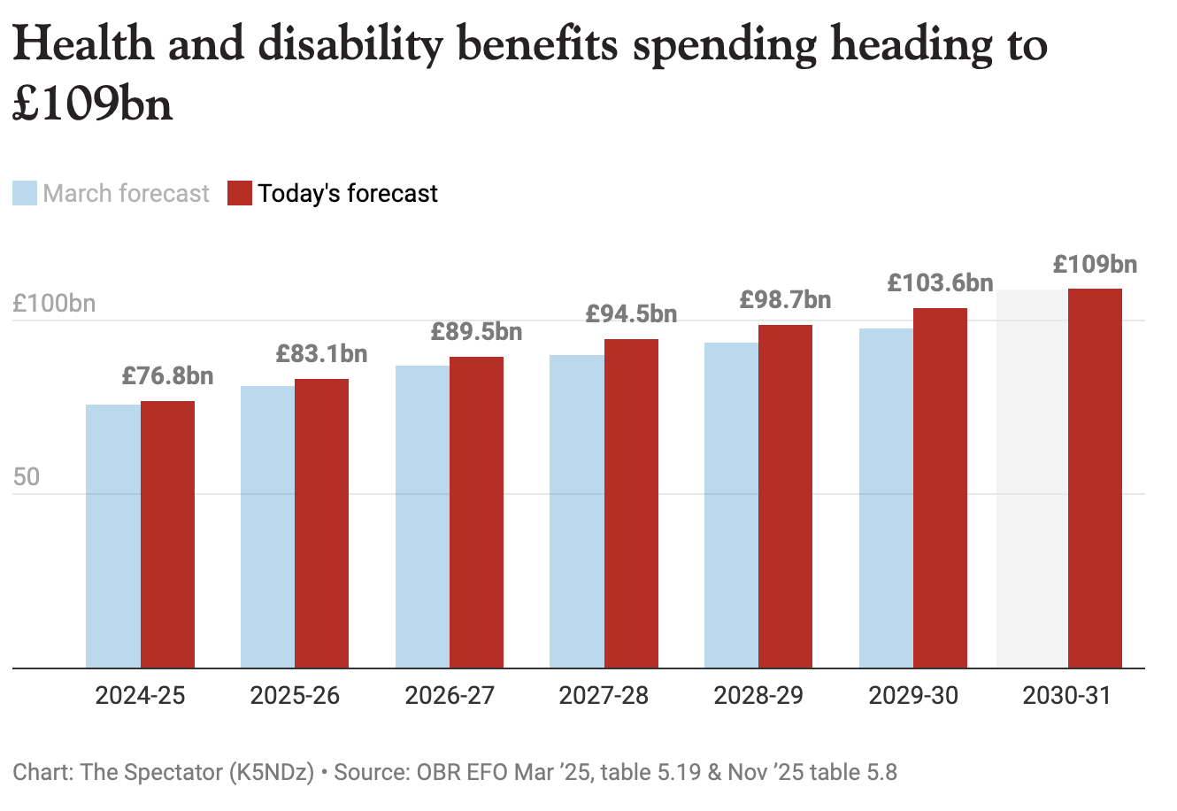 There were giveaways for those on welfare though with the measures announced in the Budget taking benefits spending up by £9.3 billion. That includes the U-turns on winter fuel and disability benefits cuts as well as the scrapping of the two-child benefit cap at a cost of £3 billion.