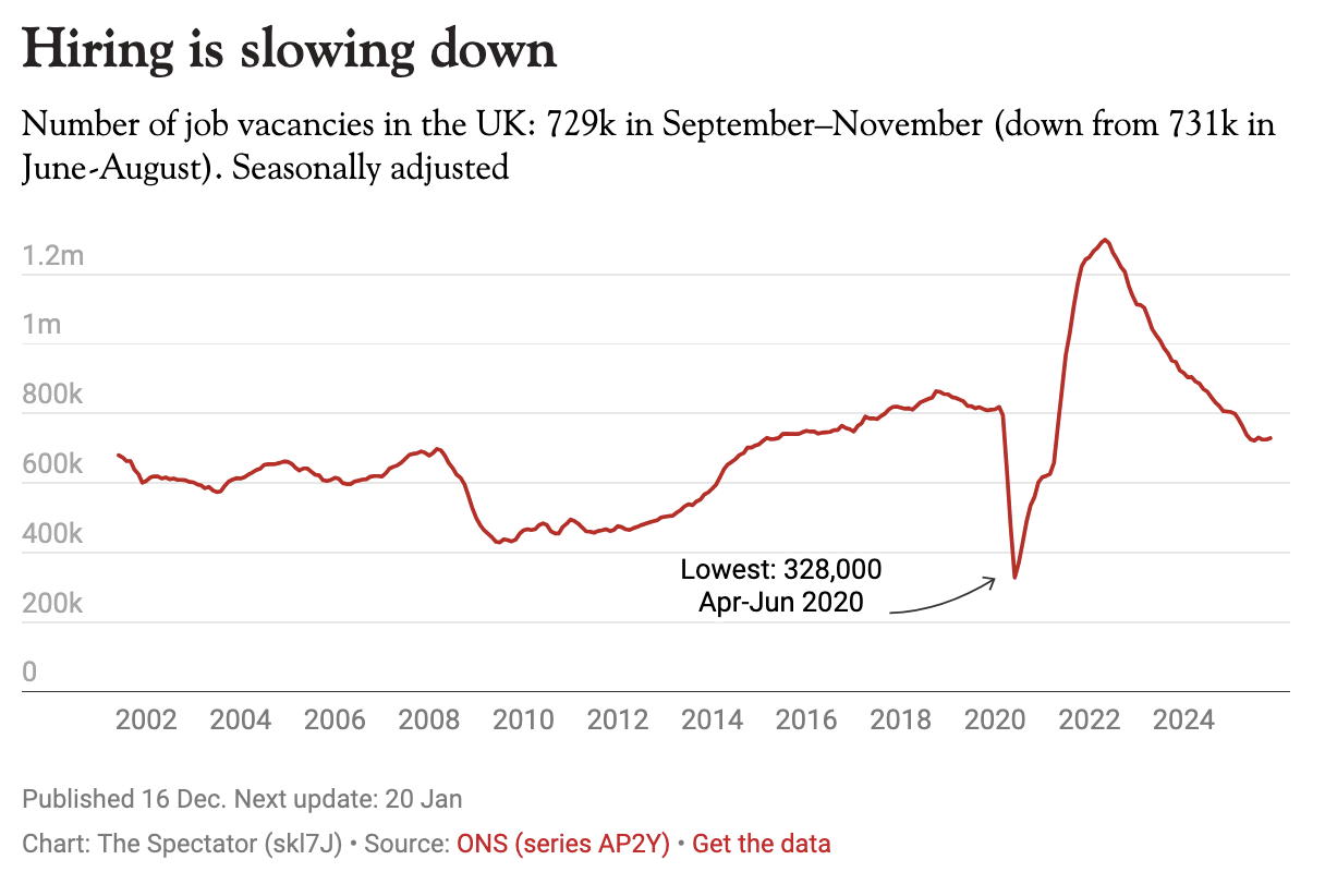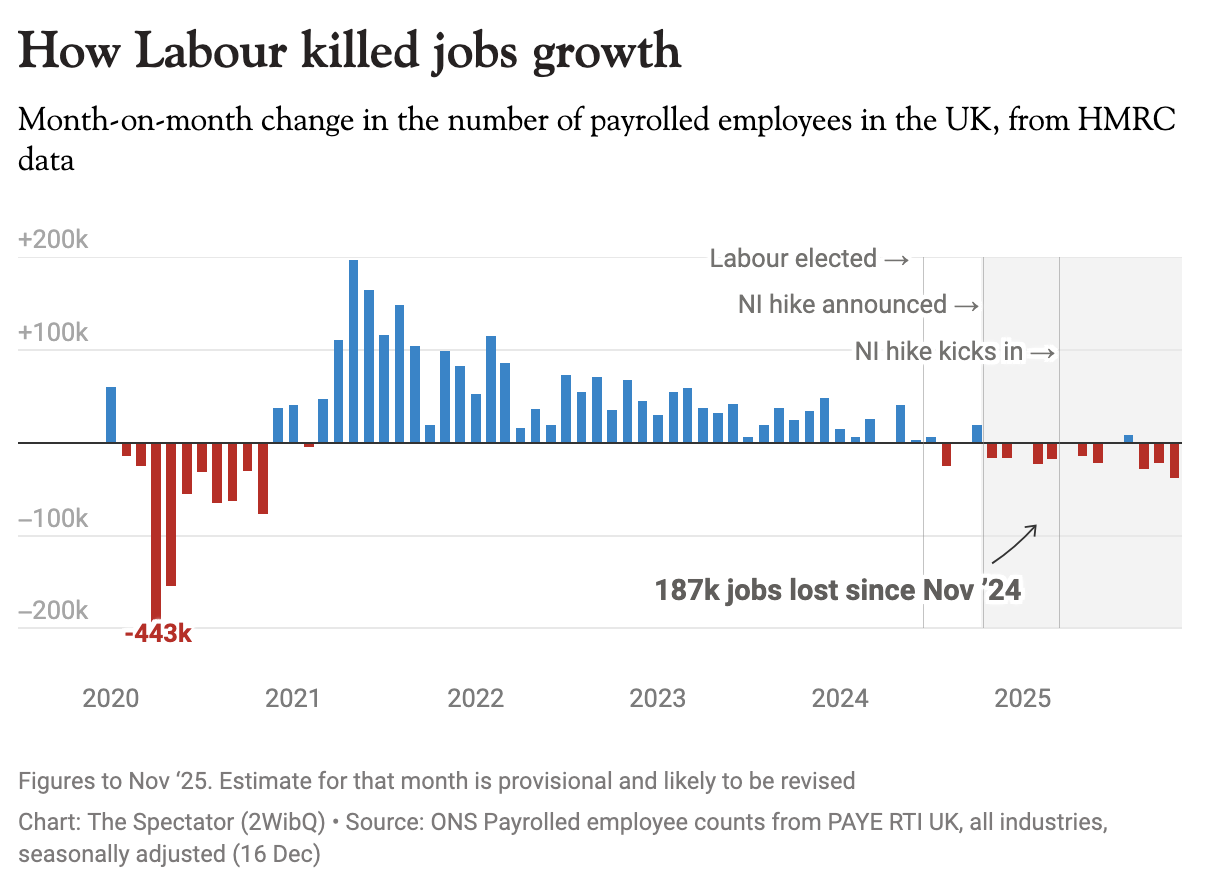 Unemployment has risen again. Figures released by the Office for National Statistics (ONS) show the UK’s unemployment rate rose to 5.1 per cent in October – the highest joblessness rate since 2021. Payrolled employment fell too by 38,000 in a single month, meaning 187,000 jobs have now been lost since last November, in a blow to Rachel Reeves’s bizarre claim that her tax-raising measures are not harming employment.