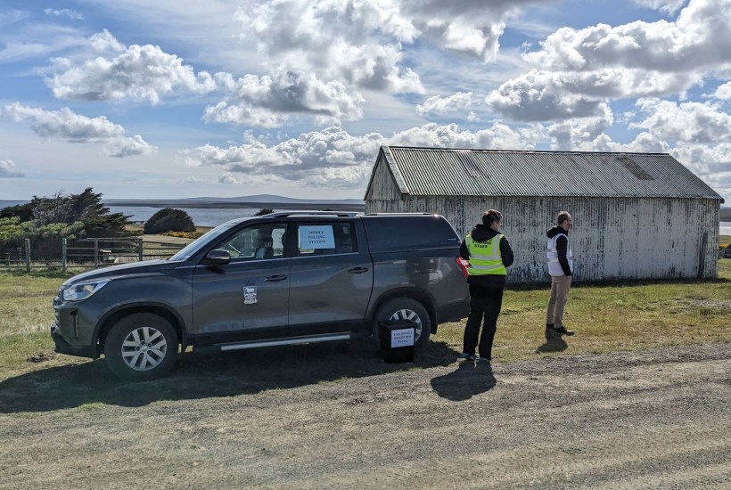 With permission from the Registrar General and the Returning Officer, I hit the road at 8 a.m. with team two – made up of Roxi (who works in the Attorney General’s office), Megan (HR) and Vasil, a Swedish election observer – to tackle the northern coastline of East Falkland, an unsurfaced length of ringroad known colloquially as ‘the M25’.