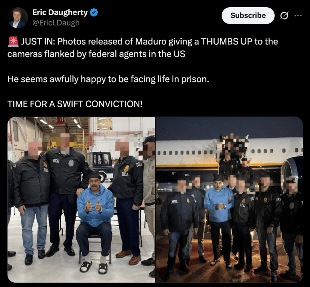Perhaps Maduro will even make a fan out of Donald Trump by the end of this – though Cockburn reads that it was a video of Maduro dancing that prompted Trump to greenlight the kidnapping. This hemisphere is only big enough for one smooth-dancing boomer president.