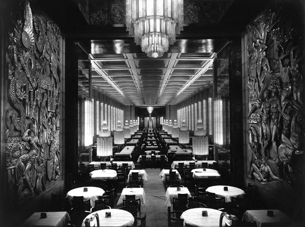 The dining room of the transatlantic liner SS Normandie (1935). HISTORY AND ART COLLECTION / ALAMY
