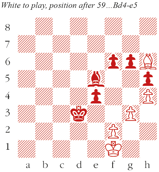 60 Bc1 Only 60 Bg7! clings on. e3! 61 Bxe3 Bxg3 62 Bg5 Played in desperation. fxg5 White resigns as the pawn endgame offers no hope.