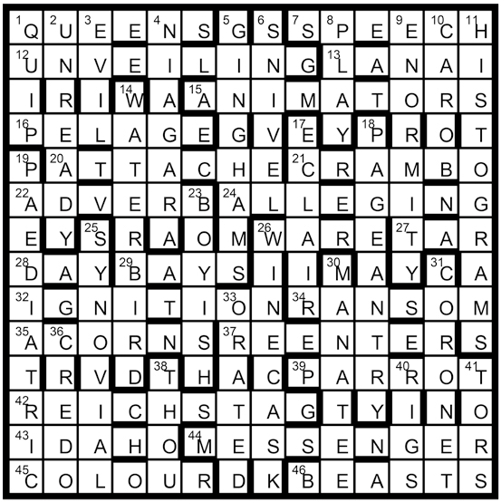 The unclued lights can follow QUEEN’S, all of which are verifiable in Brewer.