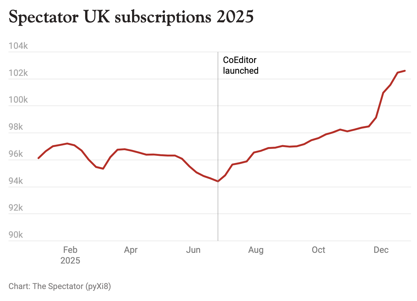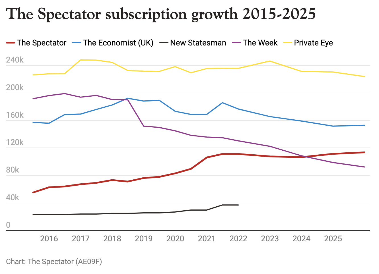 Something remarkable is happening at the world’s oldest weekly magazine. After years of relatively flat subscriber numbers, The Spectator has surged past its Covid-era peak and now has more paying subscribers than at any point in its 198-year history.
