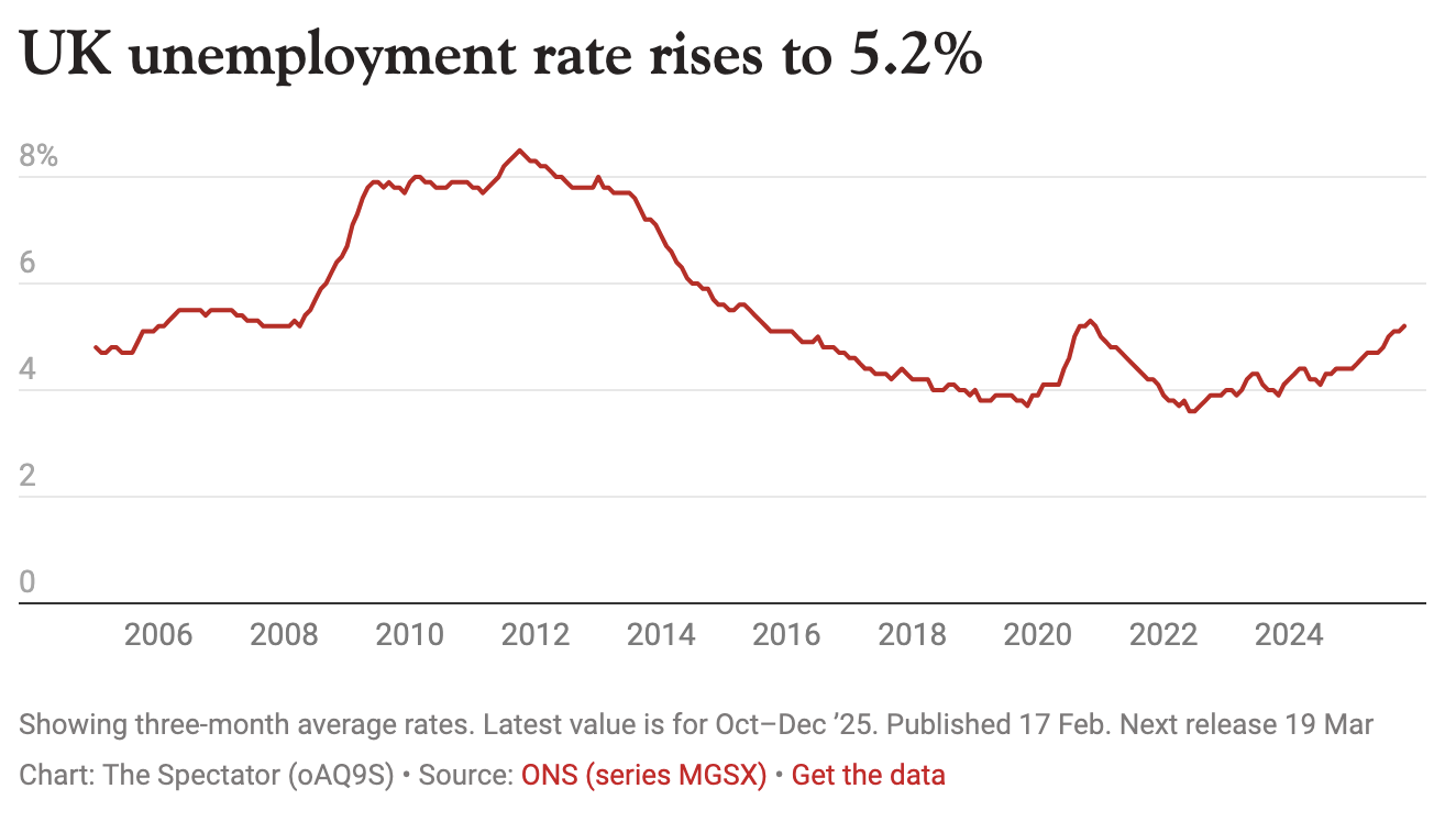 Britain’s jobs market continues to struggle. Figures released by the Office for National Statistics (ONS) this morning show that the unemployment rate increased to 5.2 per cent, the highest rate in almost five years.
