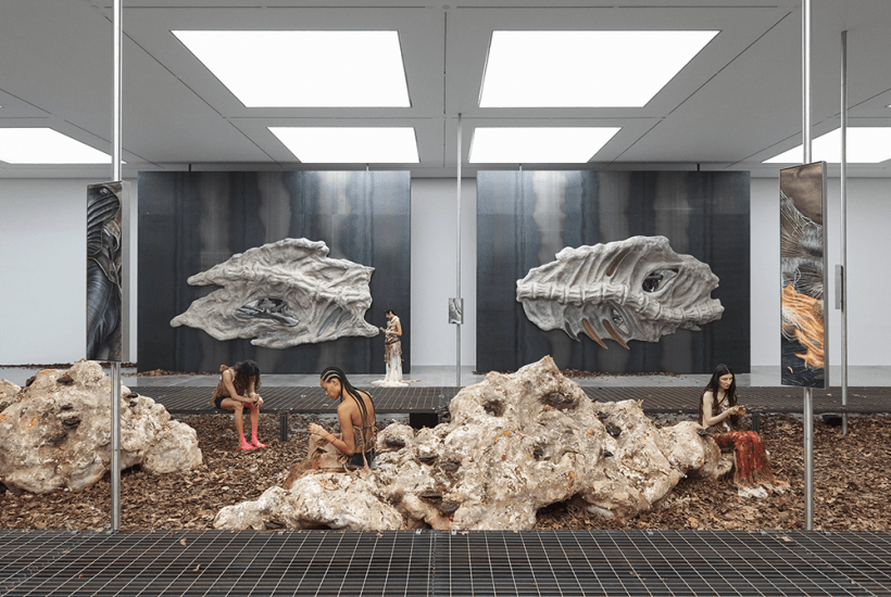 If there is a new spirit in art, it’s probably the recent vogue for visions of a post-human world – of the last vestiges of a synthetic civilisation slurped up by the muck of time. Taking its cues from J.G. Ballard (a deeply 1980s art-college reference) and the French artist Pierre Huyghe (who did much the same thing rather better as long ago as 30 years) it’s hardly radical. But if you want to see what it’s all about, look to the current solo show by Klara Hosnedlova (b.1990) at White Cube Bermondsey. One gallery contains a monumental sculpture hewn from hundreds of thousands of strands of brown cotton thread, cascading from the ceiling and separating into a tentacular delta as they hit the floor; if the Titans had sported dreadlocks, they might have looked a lot like this.