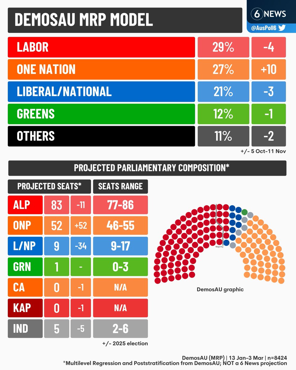 In reality, One Nation could be looking at two or three Upper House seats and maybe a couple of Lower House seats, although those will be tricky. Anything won will almost certainly be snatched off the Liberals.