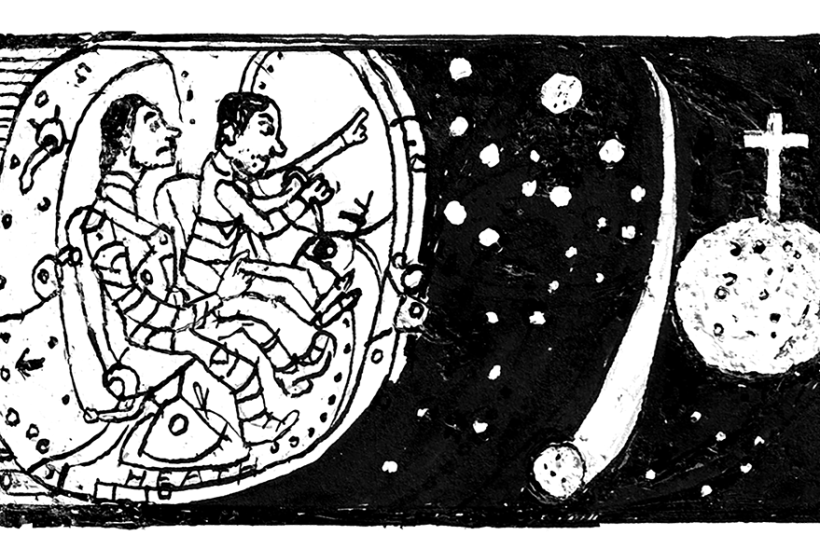 The Moon’s brightness illuminated Integrity’s interior. The crew turned out the cabin lights to get a better view. Most of the far side was in darkness, creating something like a hole in the sky, so they concentrated on the sunlit crescent as they sped towards the Moon’s shadow and the end of their outward journey.