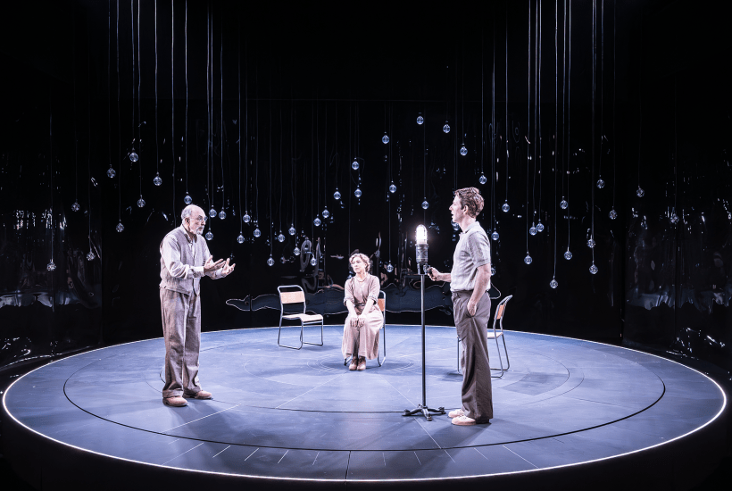 It’s a very chatty show. Three actors with three wooden chairs appear on a plain stage reciting dialogue about a meeting in Denmark in 1941 between the physicist Niels Bohr, his missus, and a family friend, Werner Heisenberg. The discussion focuses on the main developments in atomic science during the 20th century. Mrs Bohr, played by Alex Kingston, is there to offer a female angle on the ruminations of the two mega-nerds. And even before they begin, the characters reveal that they are dead and that their speeches are being conveyed to us from the afterlife. So they have nothing to win or lose from what unfolds on stage. Wow. Only a brave or a crazy dramatist would design an opening like that.