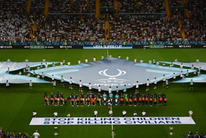 Who does Uefa think it’s kidding? It says the huge banner saying ‘Stop killing children’ unfurled at a Super Cup…
