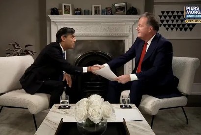 Proper prime time viewing this afternoon with a PM on the ropes. TalkTV today broadcast Piers Morgan’s interview with Rishi…
