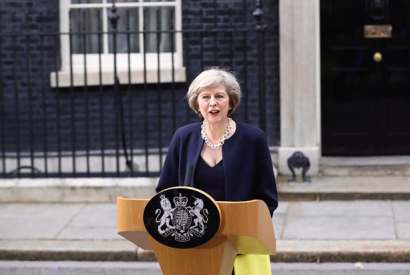 Home Theresa May made a speech in the open air in Downing Street after kissing hands with the Queen as…