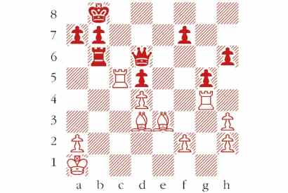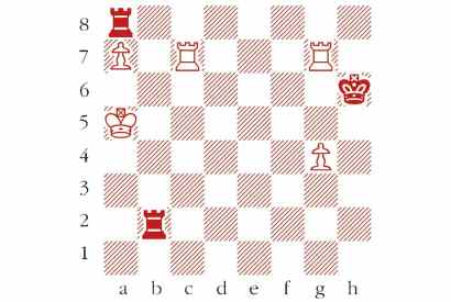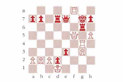 White to play. Averbakh-Zita, Szczawno-Zdroj 1950. Black has just interposed Rb6-g6, so White needs an accurate finish before e3-e2 mate…
