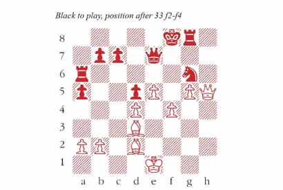 Black to play. Shirov-Kramnik, Groningen 1993. Shirov threatens Rg3-h3+ so Kramnik forced a draw: 1…Rxg7+ 2 Rxg7+ Kh6 3 Rg8…