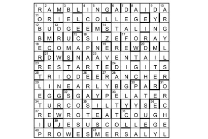 Unclued lights are from the ‘Looking Glass’ poem Jabberwocky. First prize Alison Peck, Mathry, PembrokeshireRunners-up Patricia Gibbs, Barrow upon Soar,…