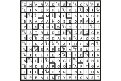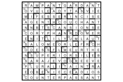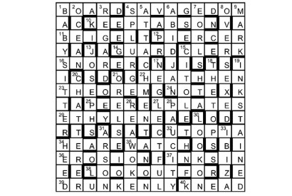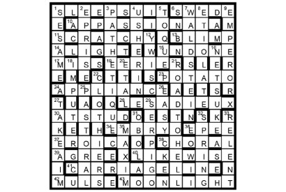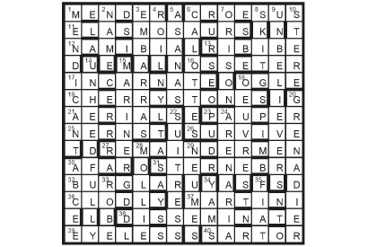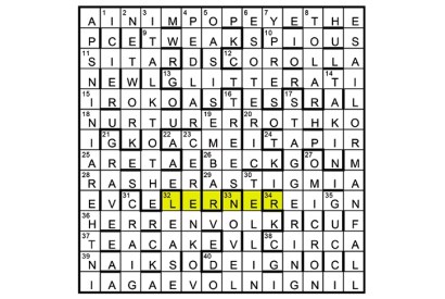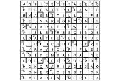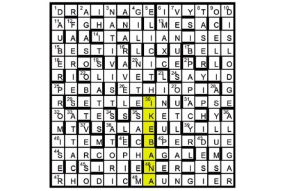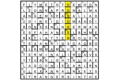 Suggested by 30 (IKEBANA, or flower arranging), the unclued lights were all anagrams of flowers: 1A gardenia; 18 rose; 22…