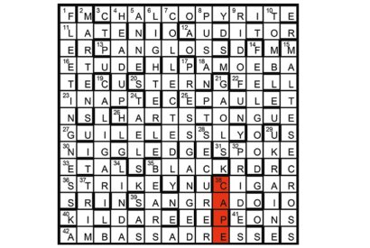 The unclued lights are expressions meaning NEVER (3A, 4D+43A, 21D+14D, 37A+1D and 37A+15D). First prize Hilary James, London W5Runners-up David…