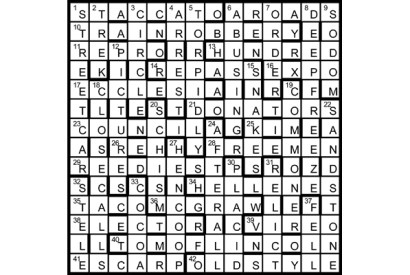 The unclued lights are all CHARACTERS (18D) in Plato’s dialogues, all but SOCRATES (1A) appearing in titles. In six cells,…