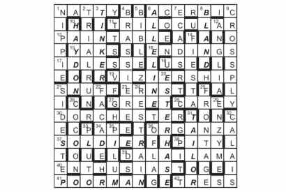 The preamble referred to ten symmetrically placed unclued entries which spell out CURRENT PUZZLE NUMBER HAS PRIME FACTORS: THIRTY-ONE, EIGHTY-THREE.…