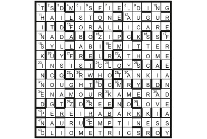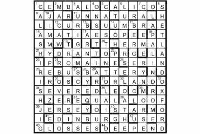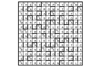 The paired unclued lights (2/25, 4/16, 5/28, 10/20, 13/17 and 15D/41) are anagrams of one another. First prize Trish Baldin,…