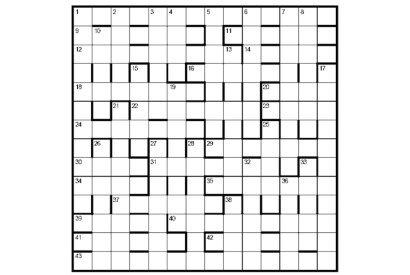 Clockwise round the grid from 3 run the names (7,4,5,6,8,8,5,6) of four characters in a novel followed by the initials…