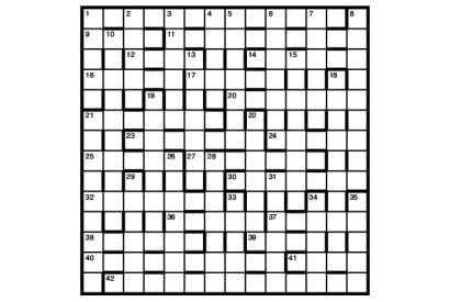 Clues are presented in alphabetical order of their solutions. The solutions have then to be fitted into the grid, jigsaw-fashion.…