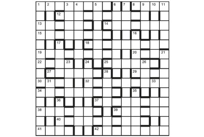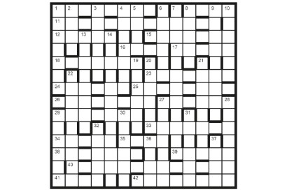 Clockwise round the grid from 1 run the final words (3,6,4,3,6,3,8,4,3,4,2,6) of a poem. Two unclued lights (one of two…
