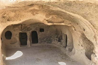 I entered the cave house carrying groceries and panting from the climb to find an old hippie woman displaying rugs…