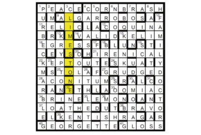 In ten clues, the wordplay omits one of the letters of the solution. These letters in the grid, read row…