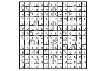 The unclued lights are expressions meaning NEVER (3A, 4D+43A, 21D+14D, 37A+1D and 37A+15D). First prize Hilary James, London W5Runners-up David…