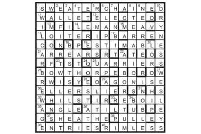 Clockwise round the grid from 21 runs a timely quotation (9,5,3,5,2,7,3,11,5) (in ODQ) followed by the initials of its author,…